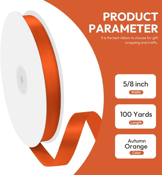 5/8" x 100 Yards Satin Ribbon - Autumn Orange Silk Ribbon with Spool - Ideal for Gift Wrapping, Floral Bouquets, Crafts, Wedding Party Decorations, Christmas and Sewing Projects