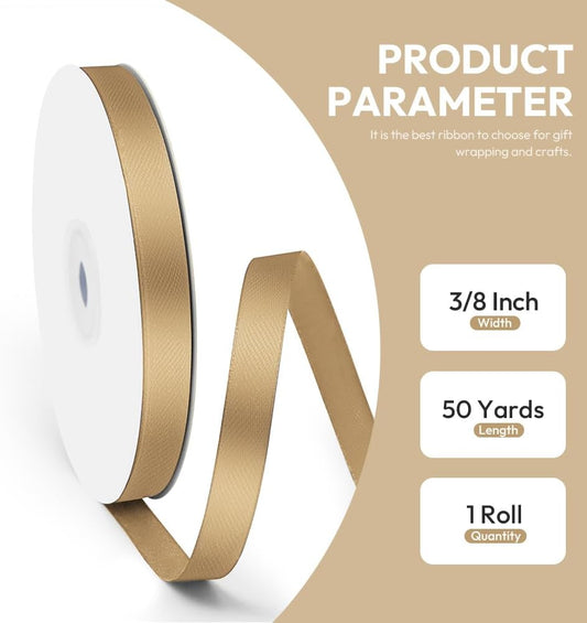 3/8" x 50 Yards Satin Ribbon - Champagne Gold Silk Ribbon with Spool - Ideal for Gift Wrapping, Floral Bouquets, Crafts, Wedding Party Decorations, Christmas and Sewing Projects