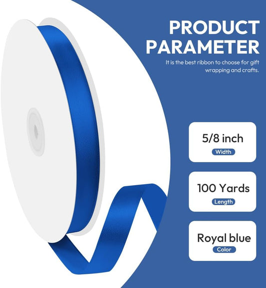 5/8" x 100 Yards Satin Ribbon - Royal Blue Silk Ribbon with Spool - Ideal for Gift Wrapping, Floral Bouquets, Crafts, Wedding Party Decorations, Christmas and Sewing Projects