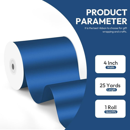 4" x 25 Yards Satin Ribbon, Navy Blue Silk Ribbon Ideal for Gift Wrapping, Floral Bouquets, Crafts, Wedding Party Decorations, Christmas and Sewing Projects