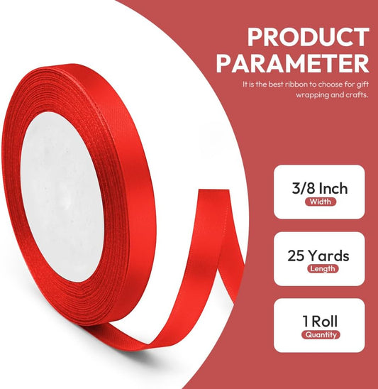 3/8" x 25 Yards Satin Ribbon, Red Silk Ribbon Ideal for Gift Wrapping, Floral Bouquets, Crafts, Wedding Party Decorations, Christmas and Sewing Projects