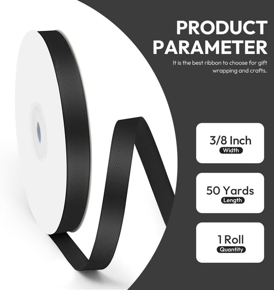 3/8" x 50 Yards Satin Ribbon - Black Silk Ribbon with Spool - Ideal for Gift Wrapping, Floral Bouquets, Crafts, Wedding Party Decorations, Christmas and Sewing Projects