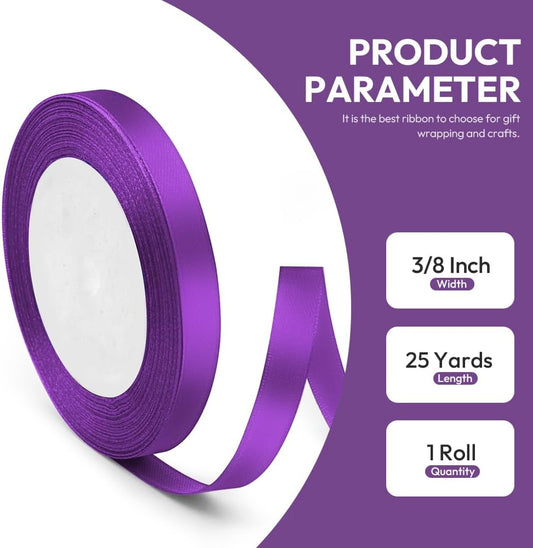 3/8" x 25 Yards Satin Ribbon, Purple Silk Ribbon Ideal for Gift Wrapping, Floral Bouquets, Crafts, Wedding Party Decorations, Christmas and Sewing Projects