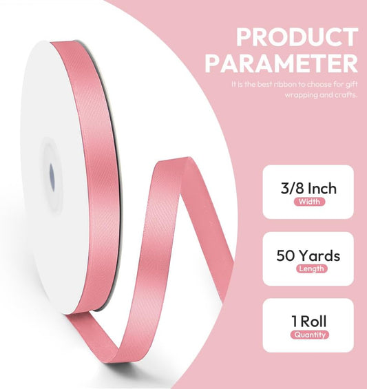3/8" x 50 Yards Satin Ribbon - Pink Silk Ribbon with Spool - Ideal for Gift Wrapping, Floral Bouquets, Crafts, Wedding Party Decorations, Christmas and Sewing Projects