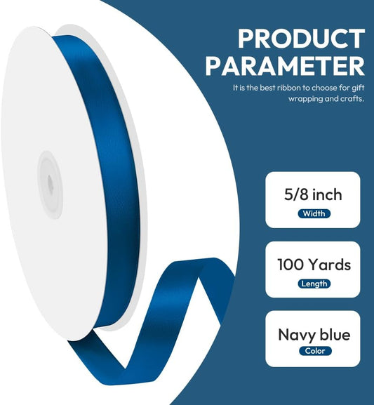 5/8" x 100 Yards Satin Ribbon - Navy Blue Silk Ribbon with Spool - Ideal for Gift Wrapping, Floral Bouquets, Crafts, Wedding Party Decorations, Christmas and Sewing Projects