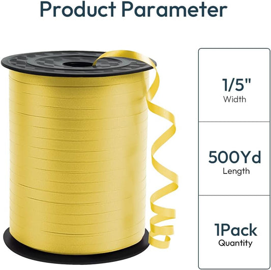 KMER LIFE Premium Yellow Curling Ribbon, 1/5" Wide x 500 Yards Christmas Curling Ribbons for Gift Wrapping, Party Decoration, Balloon String, Ribbons for Florist Flower (1 Roll)