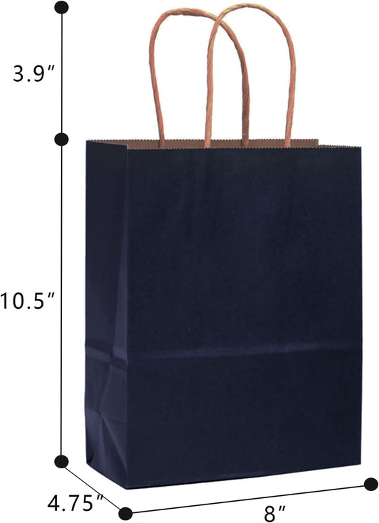 qiqee 32-Packs Navy Blue Paper Gift Bags with Handles Bulk 7.6"x4.75"x10.5" Medium Size Gift Bags Multiple Uses