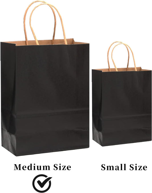 qiqee 60 pcs Kraft Bags with Handles 7.6"x4.75"x10.5" Medium Gift Paper Bag Black Solid Color Bags