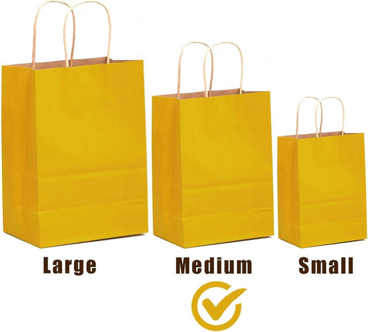 qiqee 32-Packs Yellow Paper Gift Bags with Handles Bulk 7.6"x4.75"x10.5" Medium Size Gift Bags Multiple Uses