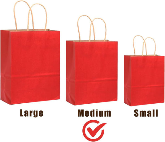 qiqee 32-Packs Paper Bags with Handles Bulk 7.6"x4.75"x10.5" Medium Gift Bags 16 Different Senior Color Bags Multiple Uses(Medium Size)