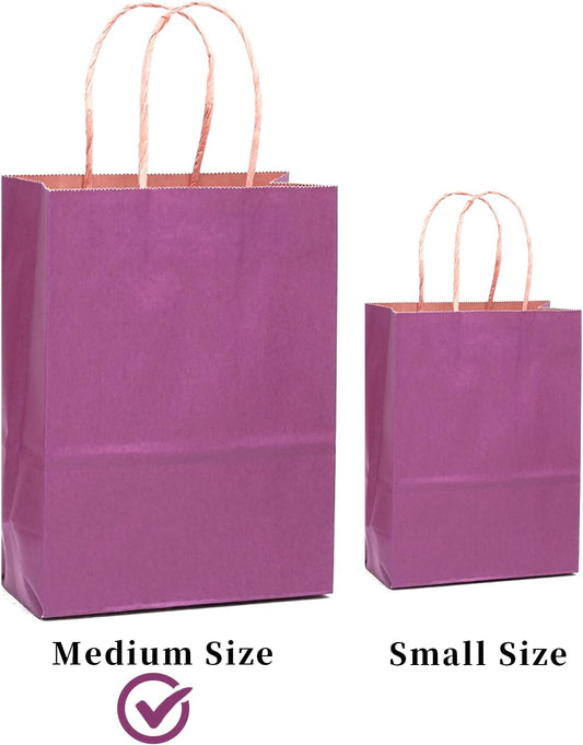 qiqee 60 pcs Kraft Bags with Handles 7.6"x4.75"x10.5" Medium Gift Paper Bag Purple Solid Color Bags