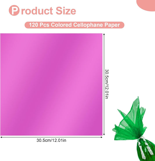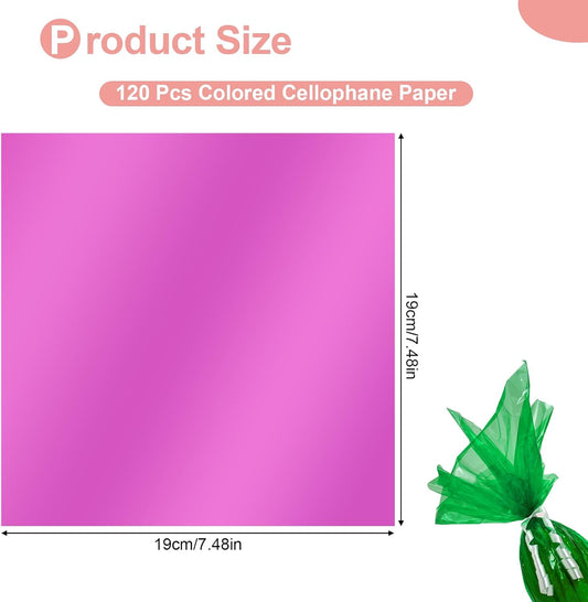 120 Pcs Colored Cellophane Sheets, Cellophane Wrap Paper Color Cello Sheets for Crafts(7.5x7.5 Inches)