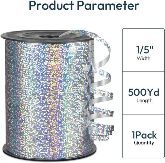 KMER LIFE Premium Silver Shiny Curling Shiny Ribbon, 1/5" Wide x 500 Yards Christmas Curling Ribbons for Gift Wrapping, Party Decoration, Balloon String, Ribbons for Florist Flower (1 Roll)