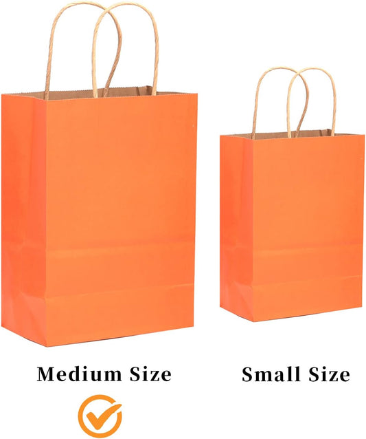 qiqee 32-Packs Orange Paper Gift Bags with Handles Bulk 7.6"x4.75"x10.5" Medium Size Gift Bags Multiple Uses