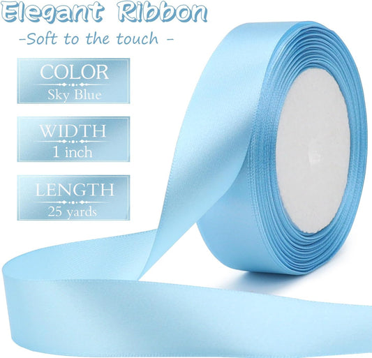 Sky blue Solid Satin Ribbon 1 Inch 25 Yards Solid Polyester Fabric Ribbon for Gift Wrapping Wedding Christmas Baby Shower Birthday Party Decoration Handmade Immortal Flower Craft