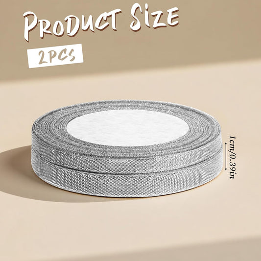 3/8 Inch Silver Glitter Ribbon 50yard (2rolls) Sparkly Metallic Fabric Ribbons Silver Organza Shimmer Sheer Ribbon for Gifts DIY Party Wrapping Wedding Decoration and Crafts