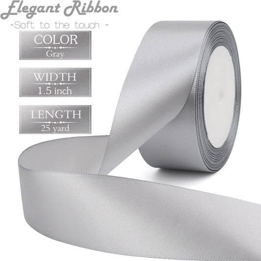 Gray Solid Satin Ribbon 1-1/2 Inch 25 Yards Solid Polyester Fabric Ribbon for Gift Wrapping Wedding Christmas Baby Shower Birthday Party Decoration Handmade Immortal Flower Craft