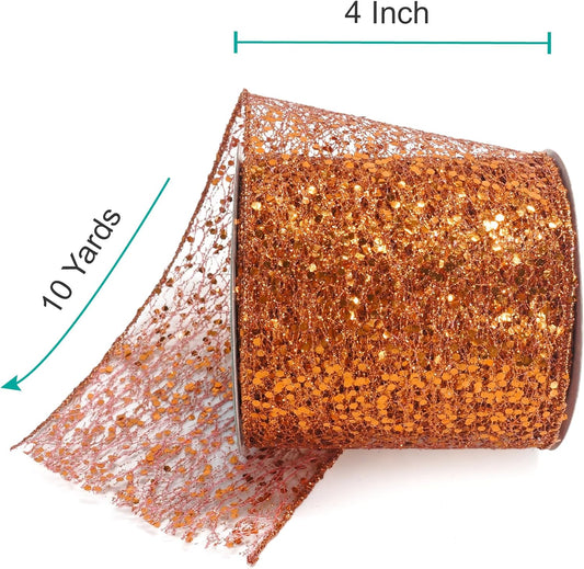 CT CRAFT LLC Sparkling Glitter Mesh Wired Ribbon 4" x 10 Yards Bronze Orange for Christmas Home Decor Bow Gift Wrapping DIY Crafts Wreath
