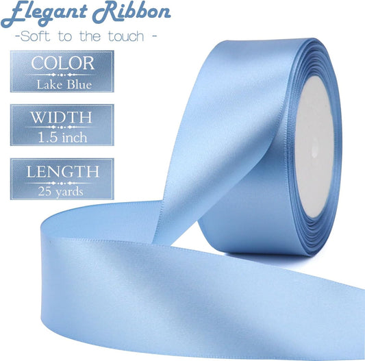 Lake Blue Solid Satin Ribbon 1-1/2 Inch 25 Yards Solid Polyester Fabric Ribbon for Gift Wrapping Wedding Christmas Baby Shower Birthday Party Decoration Handmade Immortal Flower Craft
