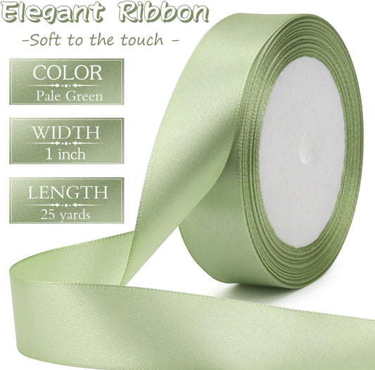 Pale green Solid Satin Ribbon 1 Inch 25 Yards Solid Polyester Fabric Ribbon for Gift Wrapping Wedding Christmas Baby Shower Birthday Party Decoration Handmade Immortal Flower Craft