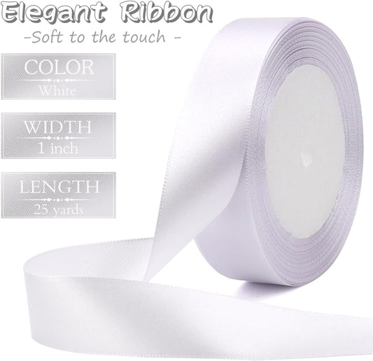 White Solid Satin Ribbon 1 Inch 25 Yards Solid Polyester Fabric Ribbon for Gift Wrapping Wedding Christmas Baby Shower Birthday Party Decoration Handmade Immortal Flower Craft
