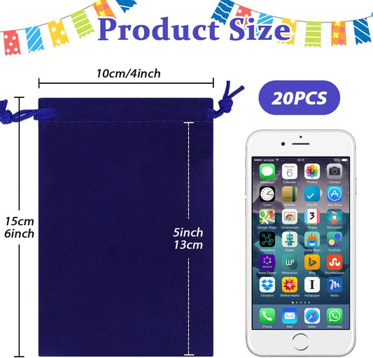 Shintop 20pcs Velvet Gift Bags, 4x6inch Blue Jewelry Bags Drawstring Coin Pouches for Dice Custom Packaging