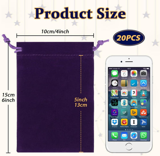Shintop 20pcs Velvet Bags with Drawstring, 4x6 inch Purple Jewelry Bags Gift Pouches for Dice, Crystals, Tarot Cards