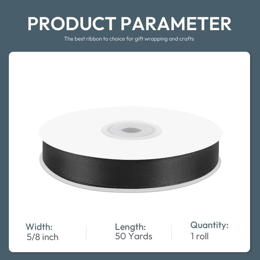 KMER LIFE 5/8" Wide x 50 Yards Black Single Faced Polyester Satin Ribbon, Black Satin Ribbon Perfect for Wedding Decor, Wreath, Crafts, Gift Wrapping & Other Projects (Black)