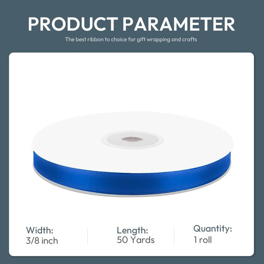 KMER LIFE 3/8" Wide x 50 Yards Royal Blue Single Faced Polyester Satin Ribbon, Royal Blue Satin Ribbon Perfect for Wedding Decor, Wreath, Crafts, Gift Wrapping & Other Projects (Royal Blue)