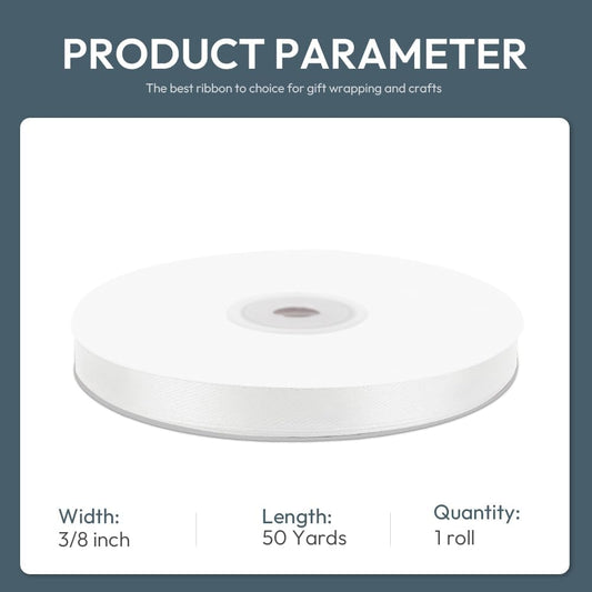 KMER LIFE 3/8" Wide x 50 Yards White Single Faced Polyester Satin Ribbon - Perfect for Wedding Decor, Wreaths, Crafts, Gift Wrapping & Other Projects