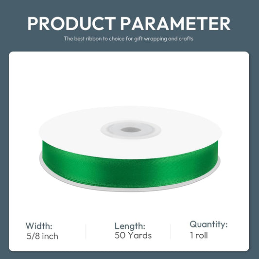 KMER LIFE 5/8" Wide x 50 Yards Green Polyester Satin Ribbon - Perfect for Wedding Decor, Wreaths, Crafts, Gift Wrapping & More