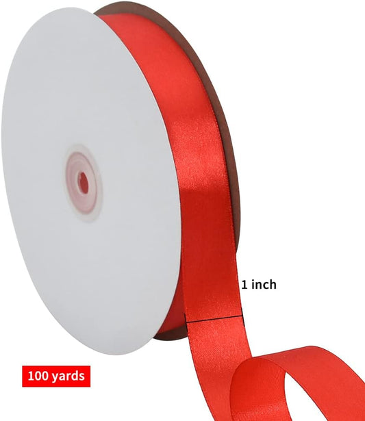 TONIFUL 1 Inch x 100yds Red Satin Ribbon, Thin Solid Color Satin Ribbon for Gift Wrapping, Crafts, Hair Bows Making, Wedding Party Decoration, Sewing, Invitation Cards, Floral Bouquets, Christmas
