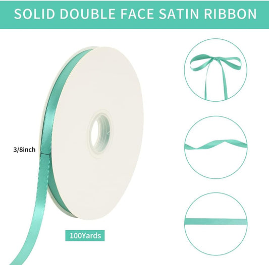 TONIFUL 3/8 Inch x 100yds Turquoise Aqua Blue Satin Ribbon Thin Solid Fabric Ribbons Roll for Gift Wrapping Invitation Floral Hair Balloons Craft Party Wedding Decoration Valentine's Day Bouquet