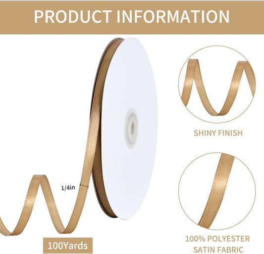 TONIFUL 1/4 Inch x 100yds Gold Satin Ribbon, Thin Solid Color Satin Ribbon for Gift Wrapping, Crafts, Hair Bows Making, Wedding Party Decoration, Invitation Cards, Floral Bouquets