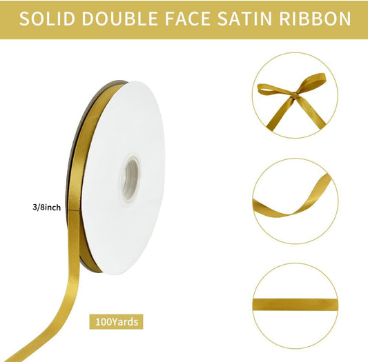 TONIFUL 3/8 Inch x 100yds Dark Gold Satin Ribbon Thin Solid Fabric Ribbons Roll for Gift Wrapping Invitation Floral Hair Balloon Craft Sewing Party Wedding Popsicles Decoration Valentine's Day Bouquet