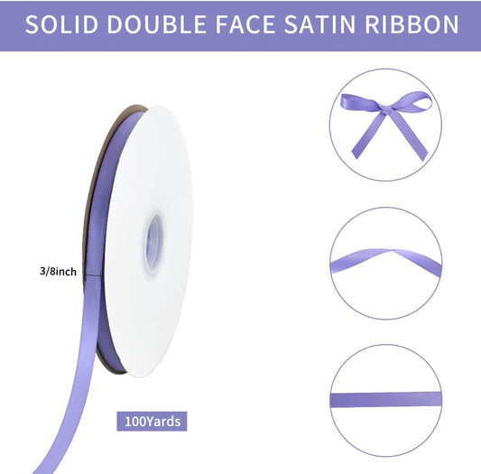 TONIFUL 3/8 in x 100yds Light Purple Satin Ribbon Thin Solid Fabric Ribbons Roll for Gift Wrapping Invitation Floral Hair Balloon Party Wedding Popsicle Decoration Valentine's Day Bouquet Halloween