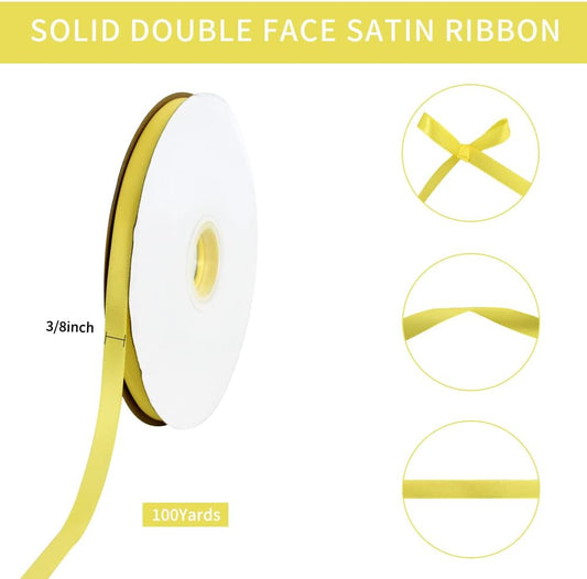 TONIFUL 3/8 Inch x 100yds Lemon Light Yellow Satin Ribbon Thin Solid Fabric Ribbons Roll for Gift Wrapping Invitation Floral Hair Balloons Craft Sewing Party Wedding Decoration Valentine's Day Bouquet