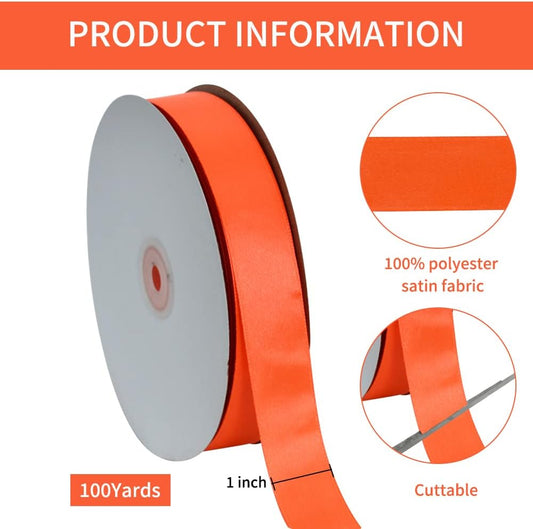 TONIFUL 1 Inch x 100yds Orange Satin Ribbon, Thin Solid Color Satin Ribbon for Gift Wrapping, Crafts, Hair Bows Making, Wedding Party Decoration, Floral Bouquets,Thanksgiving,Halloween