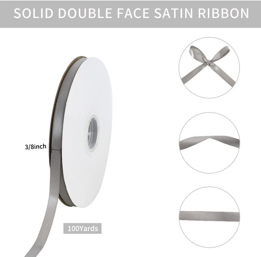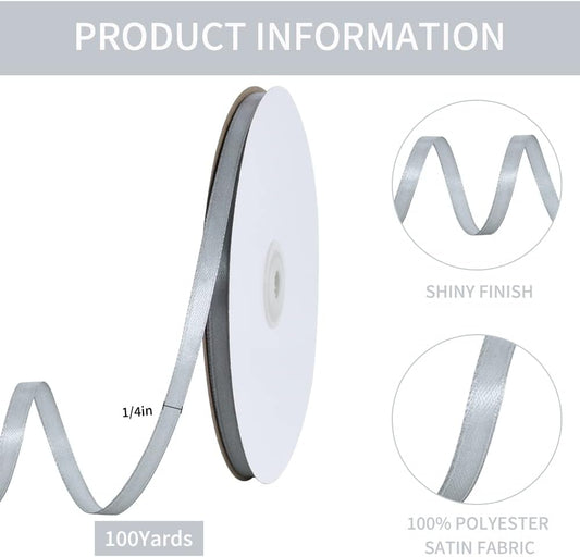 TONIFUL 1/4 Inch x 100yds Silver Satin Ribbon, Thin Solid Color Satin Ribbon for Gift Wrapping, Crafts, Hair Bows Making, Wedding Party Decoration, Invitation Cards, Floral Bouquets