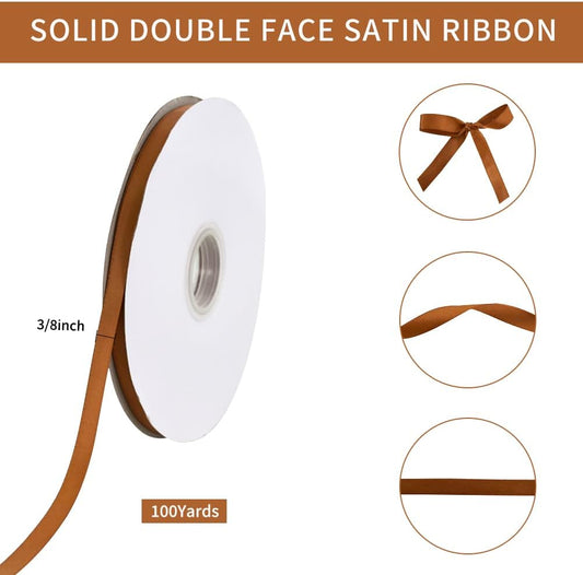 TONIFUL 3/8 Inch x 100yds Copper Brown Satin Ribbon Thin Solid Fabric Ribbons Roll for Gift Wrapping Invitation Floral Hair Balloons Craft Sewing Party Wedding Decoration Valentine's Day Bouquet