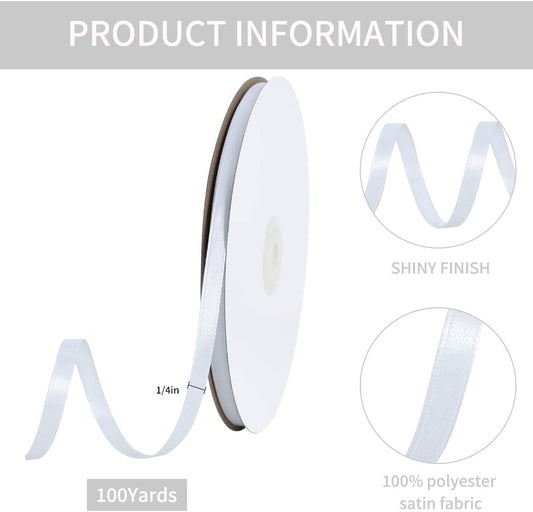 TONIFUL 1/4 Inch x 100yds White Satin Ribbon, Thin Solid Color Satin Ribbon for Gift Wrapping, Crafts, Hair Bows Making, Wedding Party Decoration, Invitation Cards, Floral Bouquets,Halloween,Christmas
