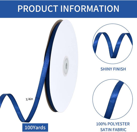 TONIFUL 1/4 Inch x 100yds Navy Blue Satin Ribbon, Thin Solid Color Satin Ribbon for Gift Wrapping, Crafts, Hair Bows Making, Wedding Party Decoration, Invitation Cards, Floral Bouquets