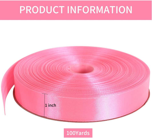 TONIFUL 1 Inch x 100yds Pink Satin Ribbon, Thin Solid Color Satin Ribbon for Gift Wrapping, Crafts, Hair Bows Making, Wedding Party Decoration, Invitation Cards, Floral Bouquets, Christmas
