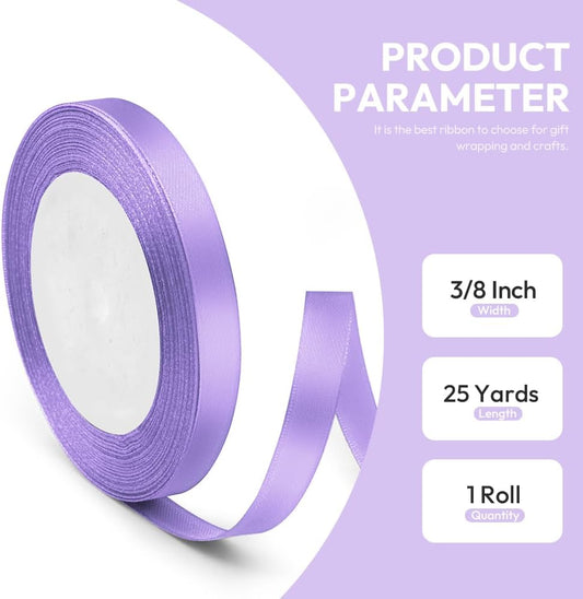 3/8" x 25 Yards Satin Ribbon, Light Purple Silk Ribbon Ideal for Gift Wrapping, Floral Bouquets, Crafts, Wedding Party Decorations, Christmas and Sewing Projects