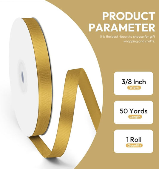 3/8" x 50 Yards Satin Ribbon - Gold Silk Ribbon with Spool - Ideal for Gift Wrapping, Floral Bouquets, Crafts, Wedding Party Decorations, Christmas and Sewing Projects
