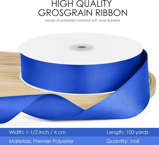 100 Yards 1.5 inch Grosgrain Ribbon, Solid Color Fabric Ribbon Perfect for Gift Wrapping, Wedding, Handmade Bows, Floral Bouquets and Party Decoration(Royal Blue)