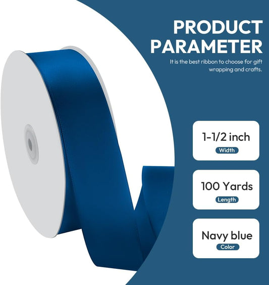 1-1/2" x 100 Yards Satin Ribbon - Wide Silk Navy Blue Ribbon with Spool - Ideal for Gift Wrapping, Floral Bouquets, Crafts, Wedding Party Decorations, Christmas and Sewing Projects