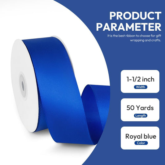 1-1/2" x 50 Yards Satin Ribbon - Roya Blue Silk Ribbon with Spool - Ideal for Gift Wrapping, Floral Bouquets, Crafts, Wedding Party Decorations, Christmas and Sewing Projects
