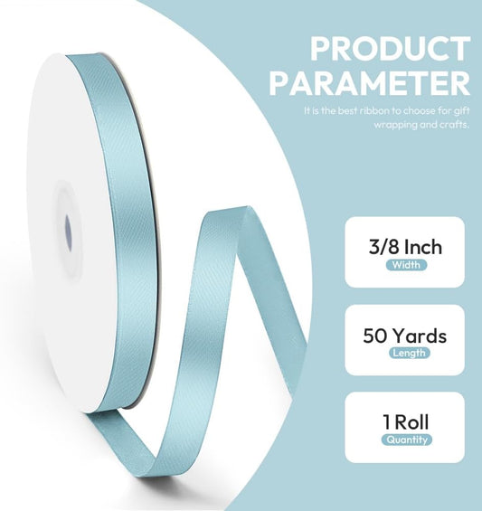 3/8" x 50 Yards Satin Ribbon - Light Blue Silk Ribbon with Spool - Ideal for Gift Wrapping, Floral Bouquets, Crafts, Wedding Party Decorations, Christmas and Sewing Projects