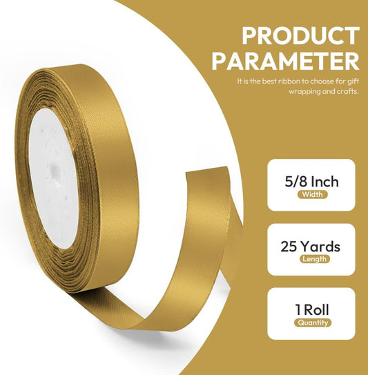 5/8" x 25 Yards Satin Ribbon, Dark Gold Silk Ribbon Ideal for Gift Wrapping, Floral Bouquets, Crafts, Wedding Party Decorations, Christmas and Sewing Projects